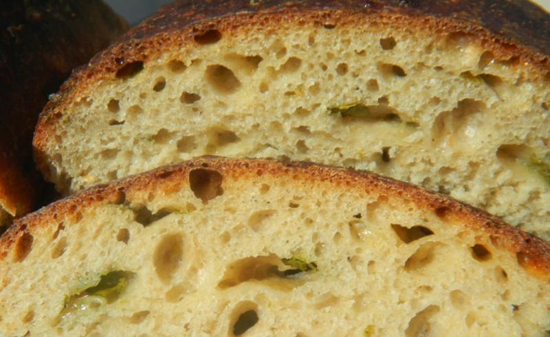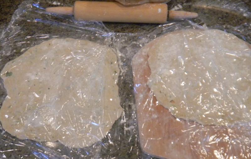 The dough was then rested for 20 minutes.  Then it was turned out on a lightly floured surface and hand kneaded for 5 minutes and allowed to rest covered for 10 minutes.  The fresh herbs and green onions were then worked into the dough using S & F’s.