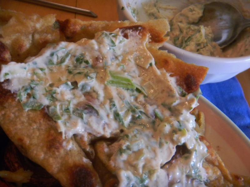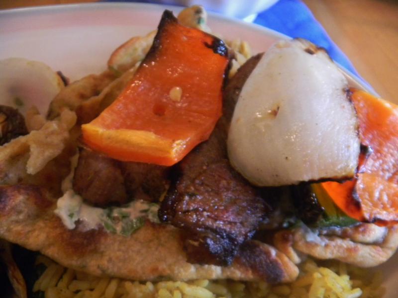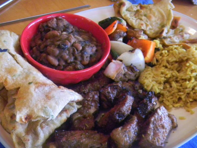 The Naan ended up with some soft and crunchy parts that made it unique.  It went well with the kabobs and tasted like a plate of Indian veggies and spices.  Yummy.