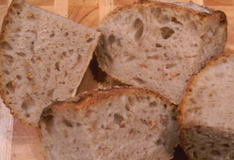 to taste it before heading out to the airport. I have no idea what the cumin does for the starter or what it is supposed to do but after you build the levain over a couple of days the cumin smell dies away and the sweet alcohol smell begins to take over on day 2 and by day 3 a hint sour fragrance starts to come through. I was really shocked that it could rise this bread so well after so few days. I froze it all after the wedge crumb shots and can't wait to taste it when we get home on Wednesday. Will let you know then.
