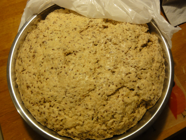 So, i use to make 3 loaves of these by hand, i use to use warm water, softed butter and mix the flax seed after the kneading.