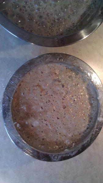 After stirring the starters I have noticed that they each have a very gelatinous consistency, not very pleasant if you ask me but it's all part of the process... I'll see if I have any additional containers because I'll obviously need a bigger bowl before it's all said and done.