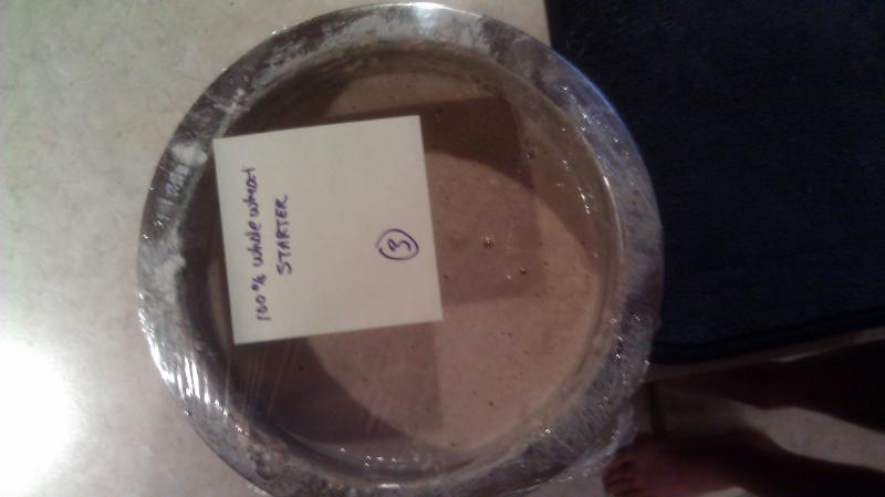 Control: Add 1c Rye Flour plus 1/2c room temp filtered waterVariation #1: Add 1c Rye Flour plus 1c of WW Flour, plus 1c room temp filtered waterVariation #2: Add 1c WW Flour plus 1/2c room temp filtered waterNow that the new feedings have been mixed in I'll let this sit for 12 to 24 hours depending on how long it takes for the dough to become highly active again. Based on what I've seen so far, I think we will be closer to the 12 - 14 hour mark. I'll let you know as soon as I get there!! Ok, so it's been about 4 or 5 hours since I fed the starter and it has already literally doubled in size and is nice and bubbly. There is lots of great action throughout the dough that shows that the fermentation process is moving along quite nicely. I decided not to feed the dough this time. There seems to be plenty for it to feed on and as such overfeeding will actually decrease the fermentation process that we are working towards.