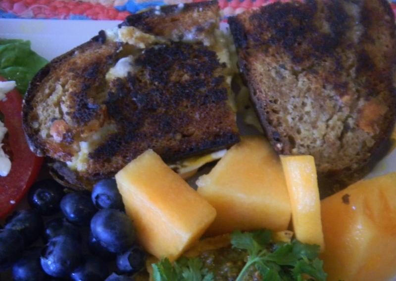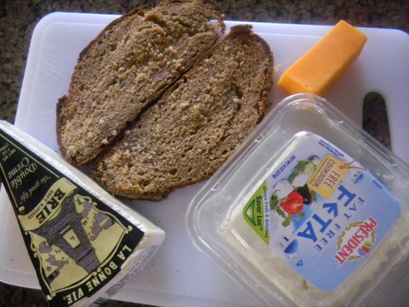 Feta, aged cheddar and brie, with a little dijon mustard, make for a nice grilled cheese for lunch.