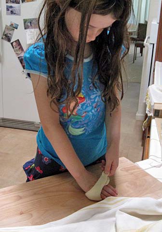 Sasha got to shape the first bagel, before going for her nap. Naomi provided support.