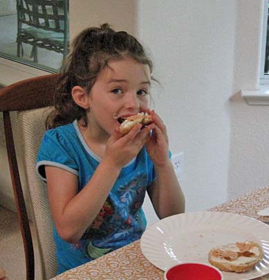 Naomi had had an introduction to bagel shaping by her great Great Uncle, Glenn, a few weeks ago. She was a quick learner. Now, little sister wanted to make bagels too.