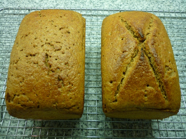 And I made two loaves - one was directly shaped and panned after the mix, and one got a 50 min bulk rise before shaping.