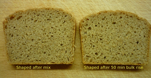The difference in height is a bit misleading - the bulked bread had actually a bit more oven spring.