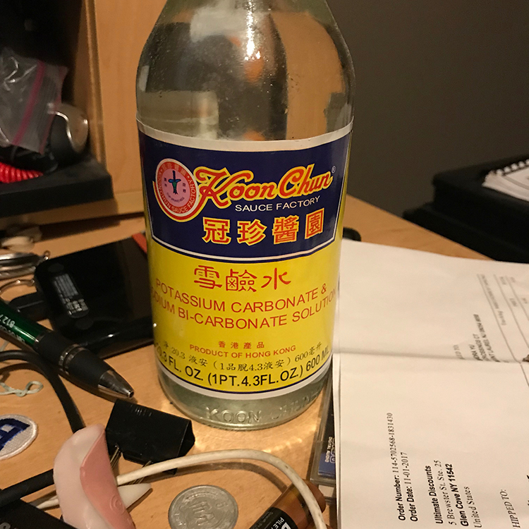 Just a little bit of lye water! I was surprised it uses so little.