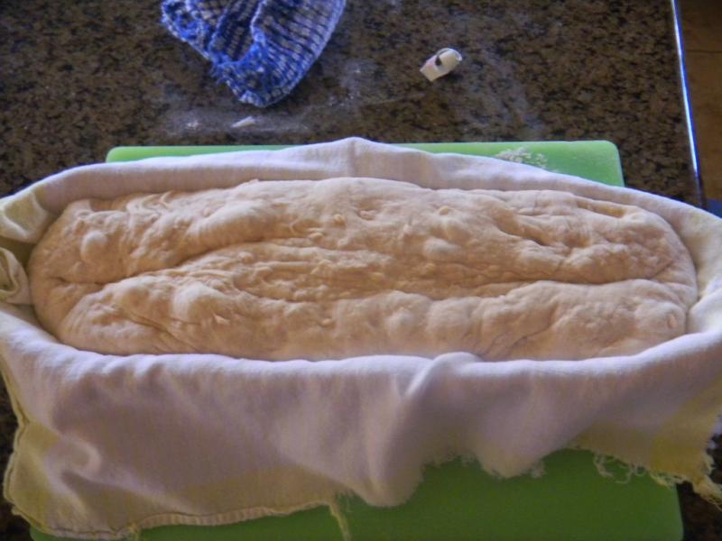 This was the original move from bamboo couche to the floured basket - not horrible so far. Then 4 hours later in the fridge the whole time..... and the oven wasn't even preheated .......