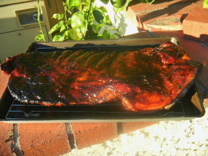 The ribs would have almost fit this bread perfectly if the loaf had been split length wise like a ciaabatta :-) The ribs turned out sort of normal - before the bread fiasco thoiugh.