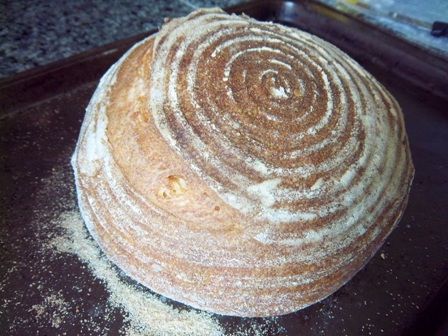 What I meant by letting it go was should I let it keep "living/eating/multiplying" and see what happens. I have a tendency (at least with plants) to fuss more than I should and then I end up killing it somehow. Trying not to be like that with the starter :) I think the bottom is pale for 2 reasons. 1.) I don't think the lighting helped at all and 2.) I have a relatively small oven, no baking stone and I've been putting my steam pan on the bottom rack which doesn't leave any room for my baking sheet. So the loaf has to be baked on the top rack so the top is getting done quicker than the bottom. I'm going to try reversing the steam pan and the loaf for my next go around to crisp up the bottom. Thanks again for your advice MiniOven! :)