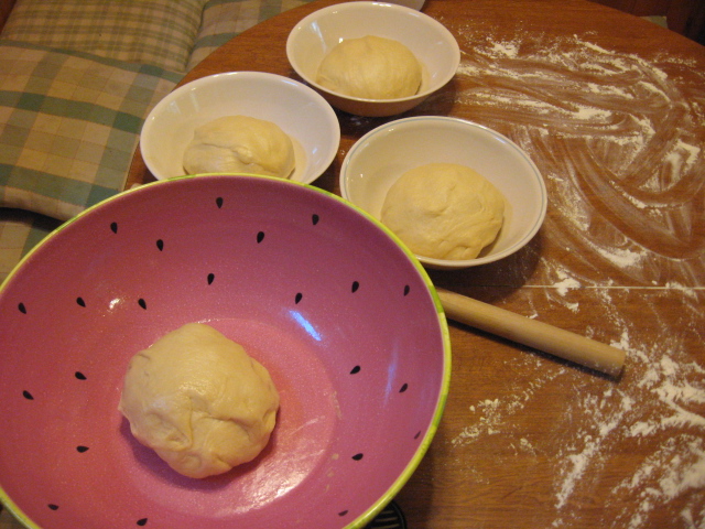 Divide the dough into 4 equal pieces and let rest for 15 mins.