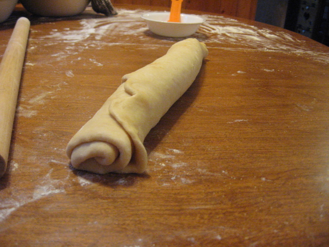Roll out dough to shape into a sunflower loaf (This is slightly different than the method I use: http://www.bgcooks.com/2010/11/holiday-sunflower-bread.html)