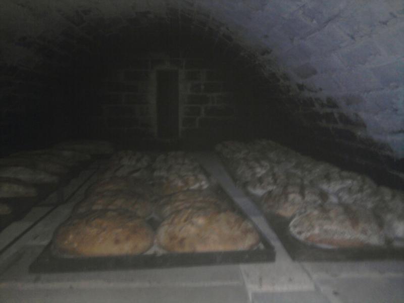 Inside the cavern!  I had to give up cooking directly on the oven floor as it is too hard to get all the loaves out from the back- it is 11 feet to the back wall.