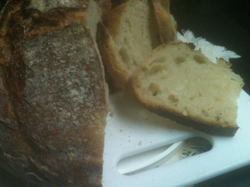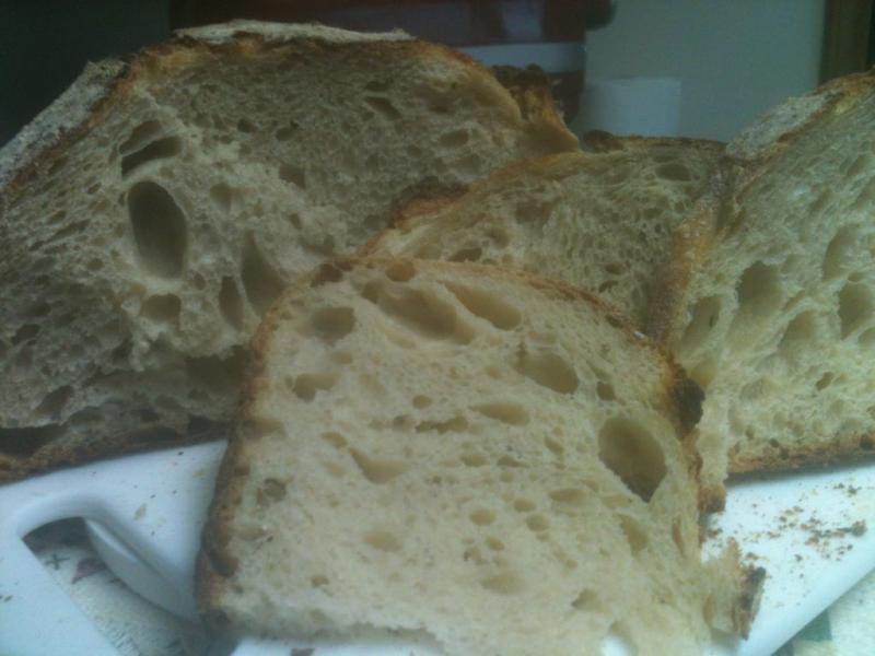 Earlier this week I baked my first loaves of Tartine bread. They were good but not as good as the second baking when I found enough patience to pay more attention to the dough than to the clock. Baked one last night and one this morning. The first half of last night's loaf has disappeared into pan toast and grilled cheese sandwiches already.