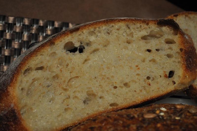 End pieces had nice open crumbs. Larger holes, as I expected from photos I have seen of this bread from others.