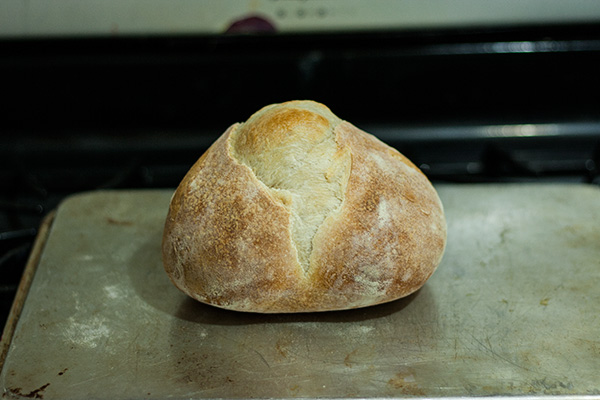 It's actually a viable way to proof a loaf if you really have to, but as the above photo clearly shows, it is very easy to accidentally misjudge whether the loaf is fully proved. It could have used another half an hour or so I think. Heh.