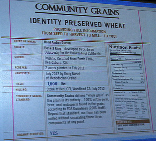 Bob Klein, of Community Grains, presented an example of product labelling that might help the consumer understand what they were purchasing: