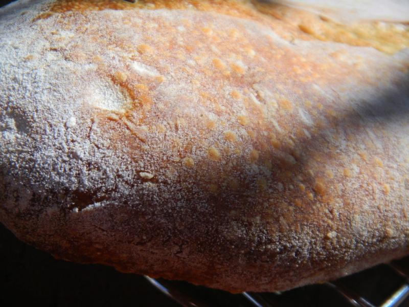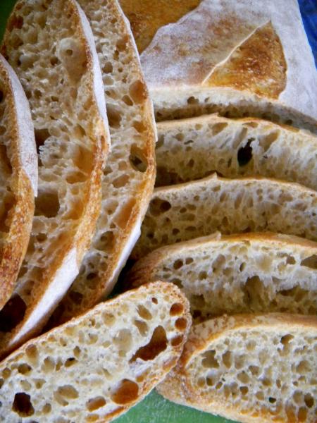 The high hydration did cause the once more batard shape to spread some as soon as it was slashed so we called it a Fat Bag - not quite a slipper.  I should have gone with my intuition, not slashed it and made a Rustic Pierre Nury instead :-)