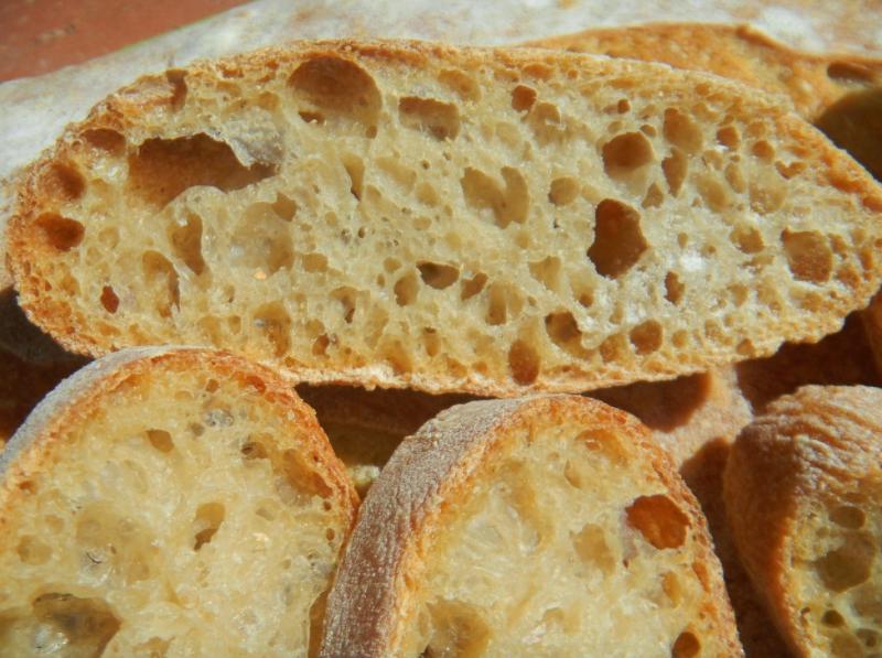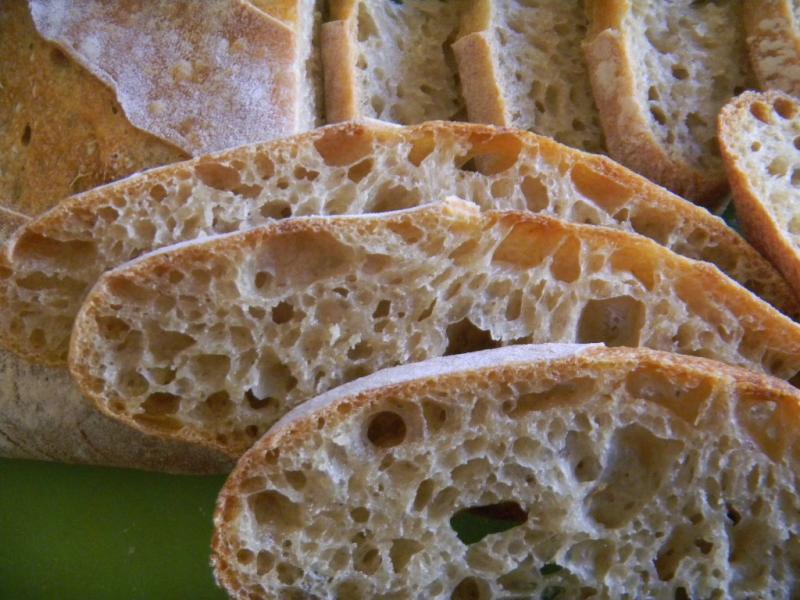 Instead of Fat Bag I thought about calling it a Ciabag as a cross between a 67% hydration baggie and an 85% ciabatta making it 75% as the average.  But Ian and Phil both used 75% hydration in their latest breads so we did too.  I stuck with the AP because that is what Phil used and both baggies and ciabatta use it instead of bread flour.  But you are right, it probably would have been better with bread flour at this hydration.