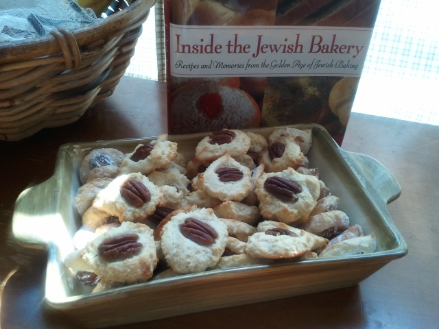 she placed a halved pecan in each and sprinkled powered sugar on some. Those look like quickly "disappearing" cookies.