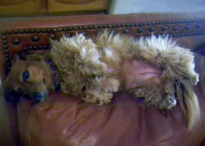 loyal and determined German baking apprentice with a a fine, if rather large, nose for what smells good and will just about taste anything to make sure it isn't poisonous. Here is another picture in her favorite place on the back of the sofa resting her weary paws to get ready for the next bake.