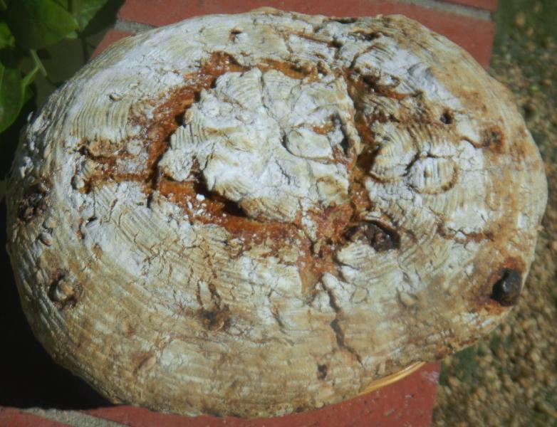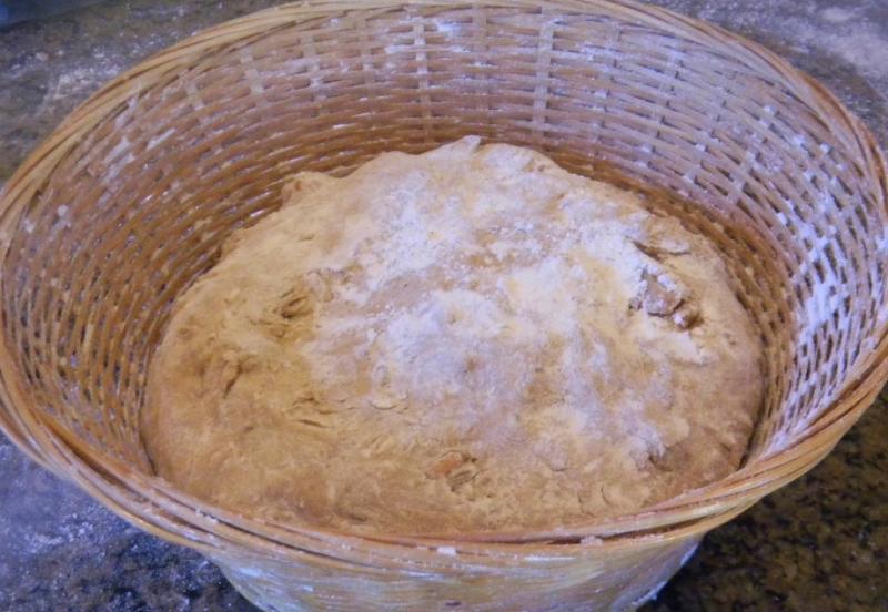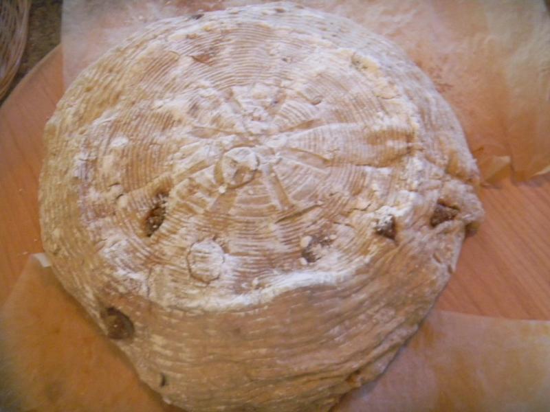 had risen above the basket and I didn't want to squish it with the parchment and peel so I was trying to hold the peel off as I flipped it over and the basket slid half off the parchment and the peel. Never had that happen before but there is no sweating the small stuff around here we just bake on and will forget all about it after today's bake.. This is one of those great breads we will make over and over again and will double the anise in it next time too - just for the smell in the kitchen.