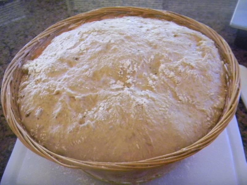 Once the 2 hour fermentation with S&F’s was complete we put in the fridge for a nice cool 37 F retard of 14 hours. In the morning we warmed it up for an hour before pre-shaping and final shaping it into a boule and placing it seam side up in a well floured basket. This is a sticky dough so some flour on the hands really helps in this regard.