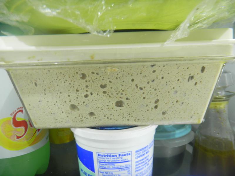 After doubling on the counter they said it wouldn't rise much in the fridge and I believed them - after forgetting the extra rye, spelt and ww we put in the bread :-) Well mine rose nicely in the fridge and it was just lucky I had the cheesecake on top of it or we really would have had an explosion :-)