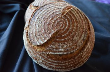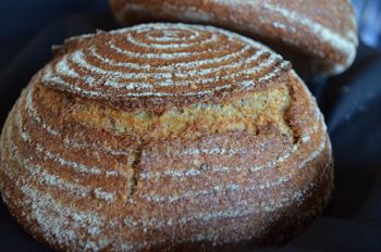 The dough was springy and passed the windowpane test with very little kneading to reach around 78 degrees. Bulk fermentation was about an hour and then formed into tight but elastic rounds. Another hour and it was time to bake. I used the cast iron DO's, hot in a hot oven and the bread was a nice golden brown. (Especially golden since I forgot to sprinkle seeds on top)