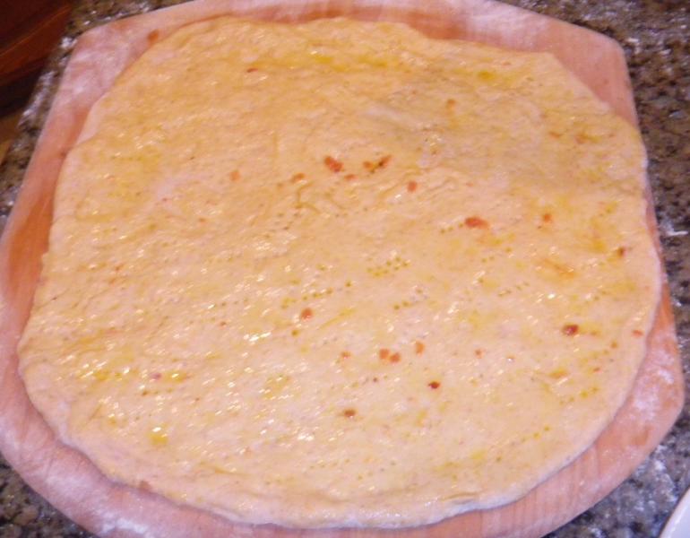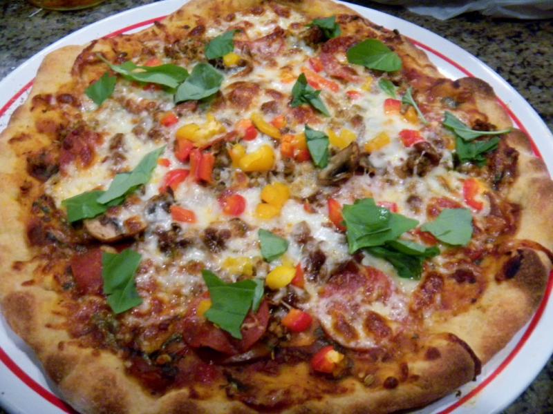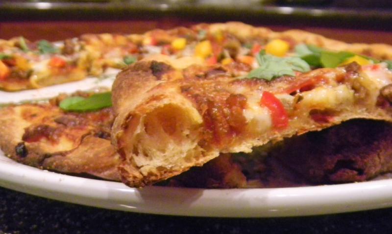 This was a new formula of ingredients that included corn meal, Chi Ch flour, whole wheat, oat flour, whole soft white wheat, instant potato flakes and AP.  It turned out not to be our favorite crust.  It was good but not our favorite.