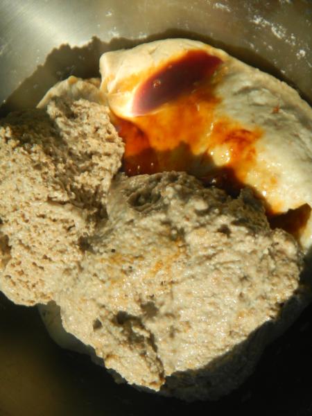 Another change we made was to use the excess sprout soaking water and yogurt whey along with water for the liquid in the dough.