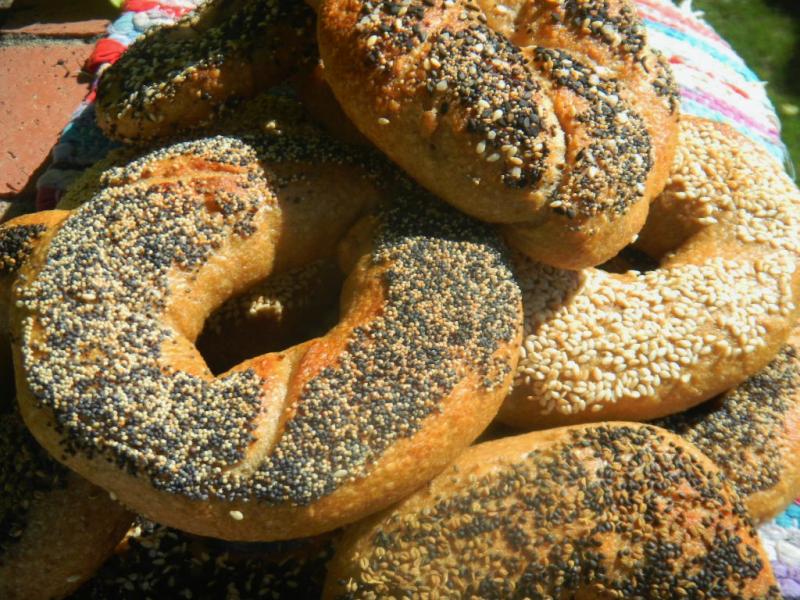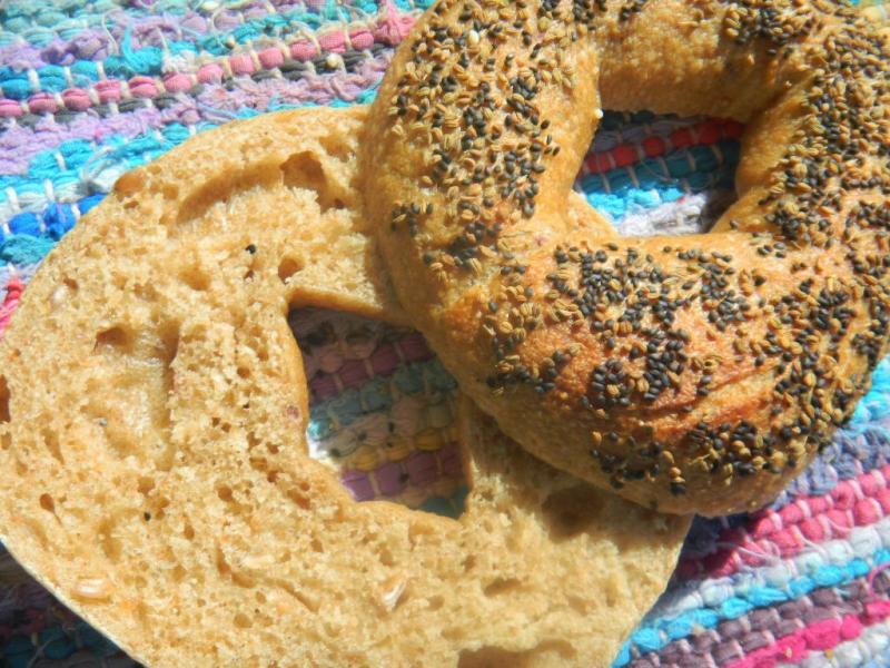 walking then bagels were made for noshing :-) When I was younger I liked pumpernickel bagels the best but haven't found any pumpernickel berries to grind anywhere ..... but I keep looking :-) There is something comforting about bagels and they remind me of family and friends - and lox and we love smoked fish of all kinds, especially white fish, around here.