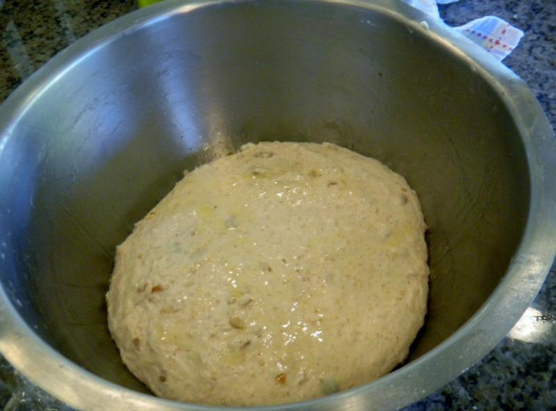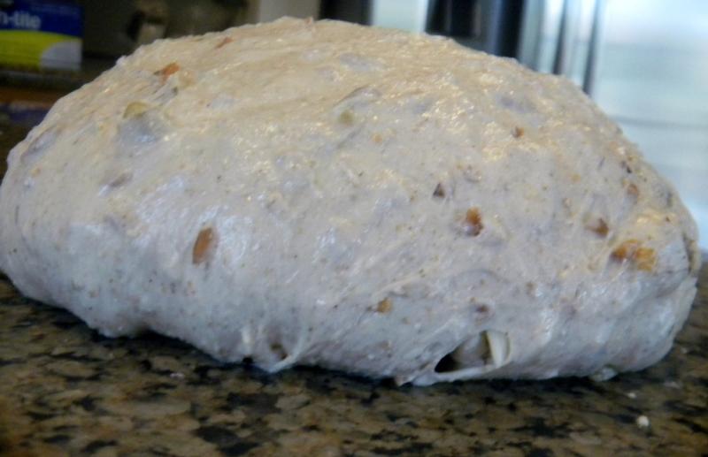 We combined and mixed everything except the nuts, fruits, seeds and bulgar scald and let it autolyse for 30 minutes. Then we did 13 minutes of French Slap and folds before adding in the rest of the ingredients and doing another 2minutes if slap and folds to incorporate the add ins.
