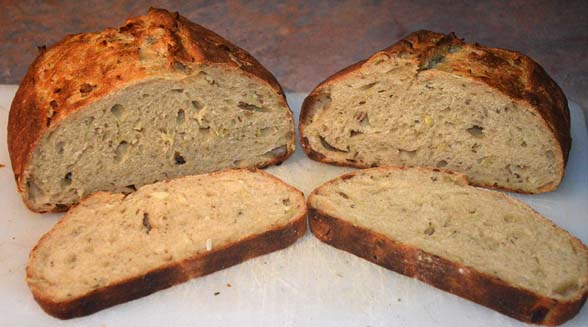 This bread has a really nice subtle garlic, onion and rosemary flavour and just screams out for a large pile of corned beef or pastrami lathered with both hot and grainy mustard. Darn, that could have been an apres ski dinner, but the deli is closed . . .