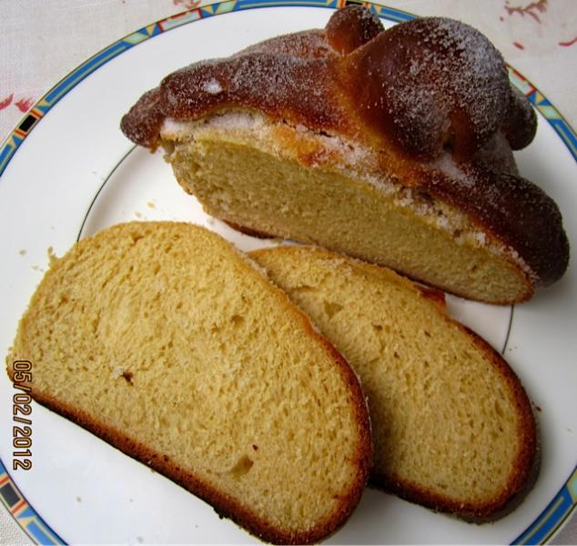 This bread tastes much better than anything I had in Mexico so far. The orange aroma is rather subtle, I'll probably add more than a tablespoon of orange blossom water next time. Anise is the other possible flavoring, but I haven't tried that, yet.