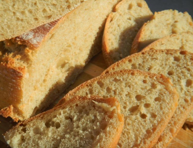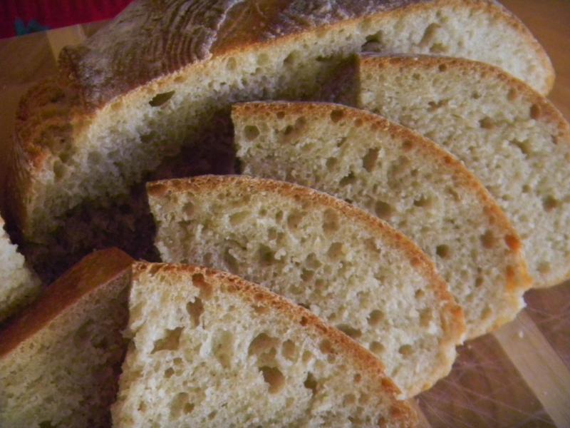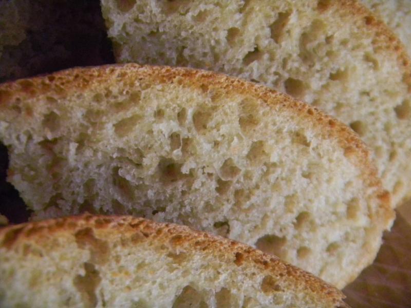 The crumb came out fairly open, was a beautiful light yellow color, moist and tasted terrific - especially with butter.  You forget how good commercial yeast bread can be if you haven't made it for awhile.  It really is delicious even if it isn't sour :-)  It will be perfect for tomorrow's stuffing.  Happy Thanksgiving to everyone.