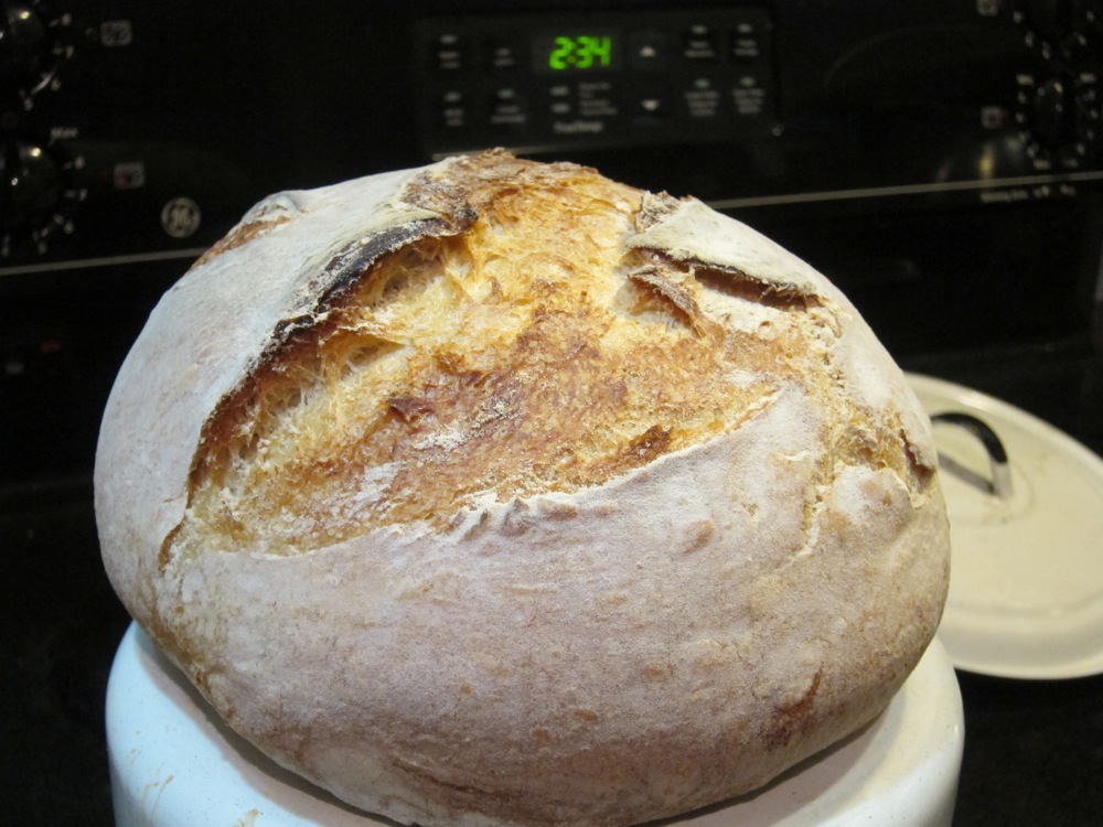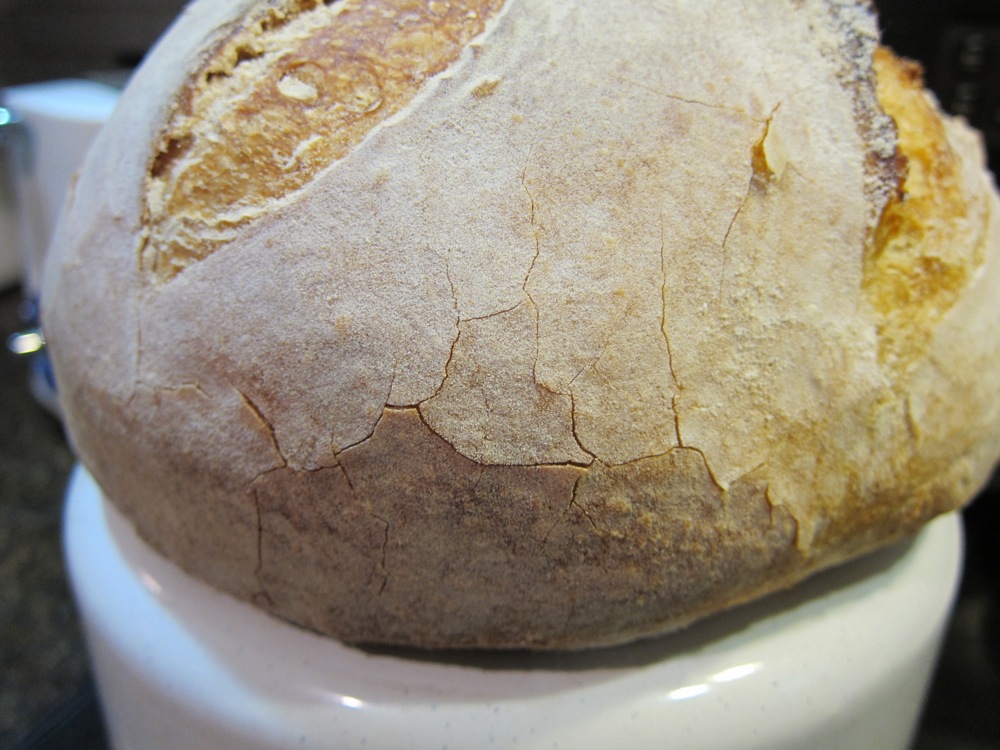 It came out great. One of the best rising loaves I've ever made, and incredibly thin, crackly crust. The only real flaw was that I overdid it with the flour on the outside while it was rising, but that's easy enough to brush off.