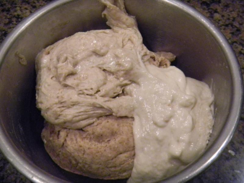 The SD and YW levains were built separately over 8 hours now that it is winter time and refrigerated overnight.  The flours and all the other ingredients were mixed with the water and allowed to autolyse for 3 hours as the levains warmed up to room temperature the next day.