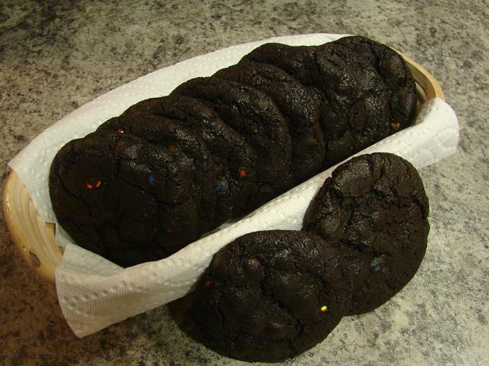 Here is the finished cookie. Recipe worked great, no changes. They taste amazing! I didnt have their special cocoa powder so I used Herseys Special Dark Dutch Process thats readily available at my local store. Really just amazing chocolate fudgy goodness!
