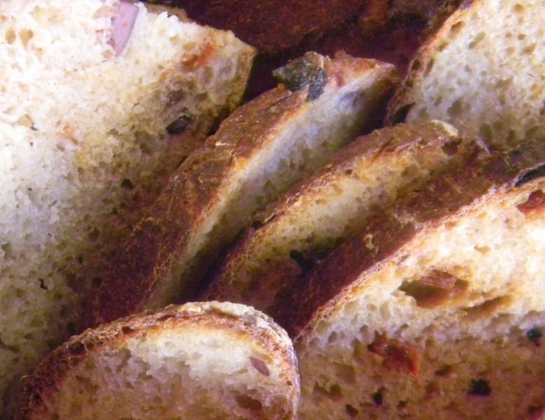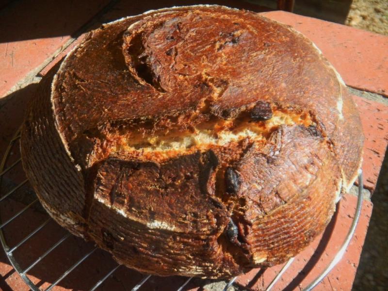 that I love dogs. Particularly their enthusiasm in baking. Beautiful dark shiny crust on this one and I'm sure delicious with all those sun-dried tomatoes in the mix. -Varda