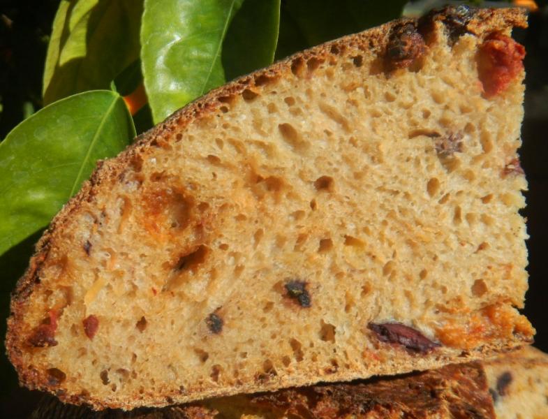 came out very well. The crumb could have been a little more open but it sure tastes great. Sort of like the Christmas Rose with added olives but without the rose. It sure is purdy inside and out!