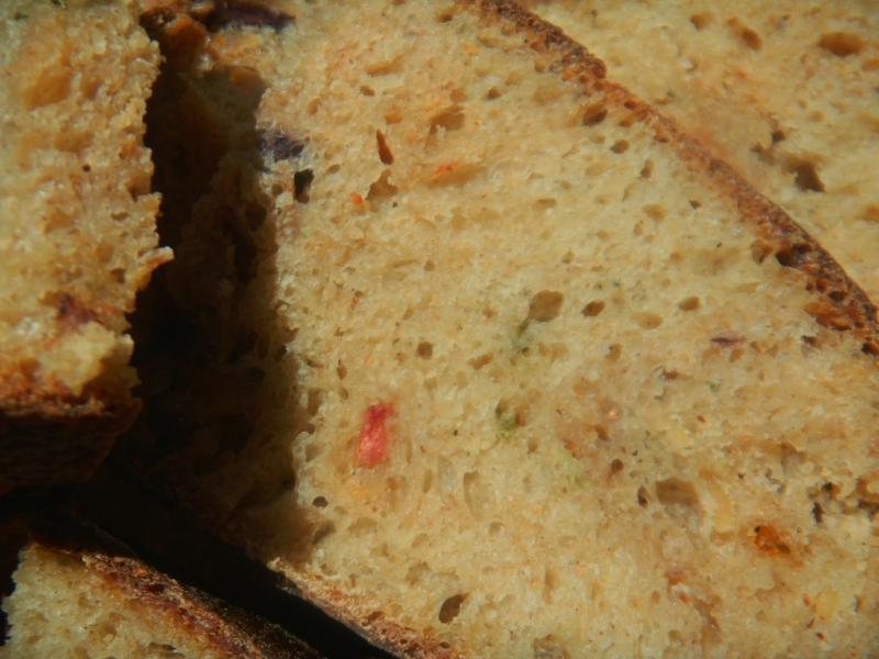 This bread came out just about as I had hoped. Nothing really overpowers flavor wise and all them come through on their own even thought the quantities of each are smallish. Needs more whole grains though :-)
