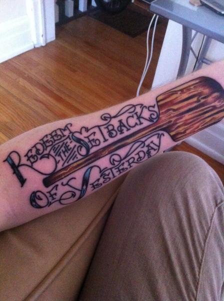 If you're wondering, my other bread tats are a baguette that says fresh daily on the inside of my whole bicep, and then a play on the band 'Black Flag' with four chocolate eclairs lined up like their logo, and the words 'Baked Goods' aligned accordingly.