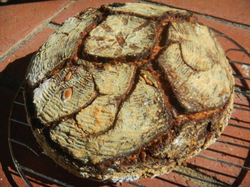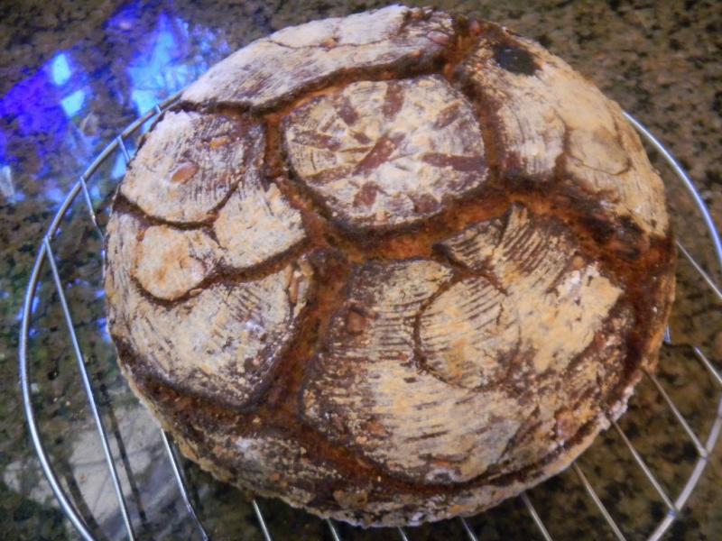 I've got an identical one go bake today that is YW instead of SD, not as intricate with the design since the hydration and whole grains are up another 5% with some unmentionables like additional seeds to perfume the bread like coriander, anise, fennel , caraway if I can figure out how to stick them to the outside since I forgot to put them on the inside. Got to replace the missing sour we like so much with something.