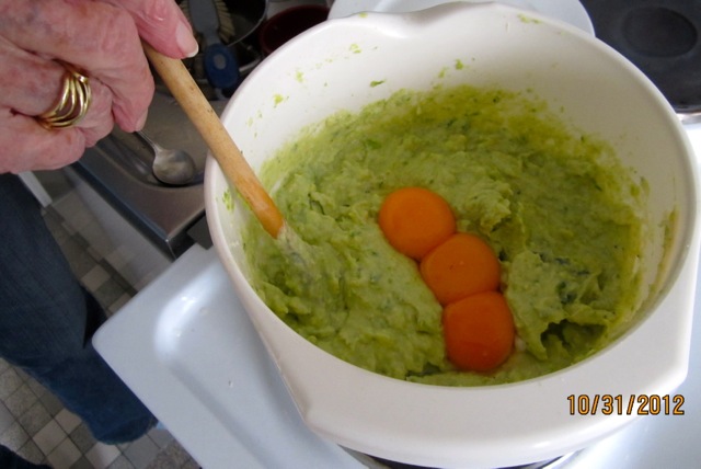 Stir purée into butter/cream mixture. Add cheese and egg yolks and mix until well blended. Season with herbal salt, pepper and nutmeg to taste.