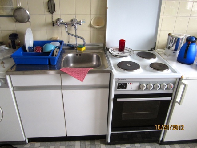 Baking there is a bit of a challenge, because the oven also serves as storage space for pots and pans, that have to find another place in a kitchen full of mother flower pots, their numerous offspring, newspaper clippings, and other things my mother likes to have around.