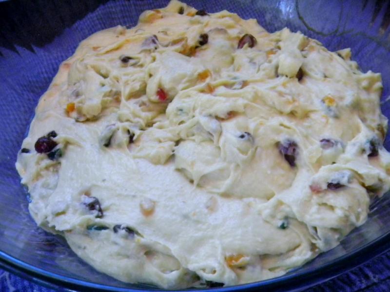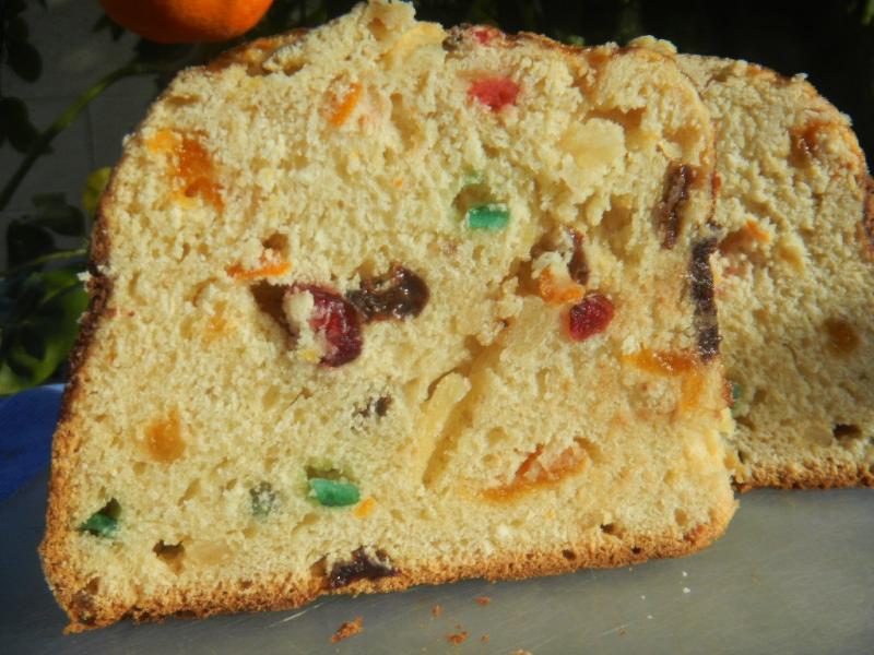 The changes were instead of using commercial yeast with the SD we subbed 83 gof Yeast Water based levain for the yeast.  For the fruits we used raisins, cranberries, red and green cherries, pineapple, citron, lemon and orange peel and some home made orange peel and Minneola zest in place of the orange zest.  We also used the glaze on top too but no other toppings.