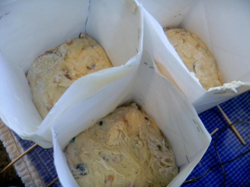 Sure enough Sue was right.   I found an origami tall trash can liner on the internet and used that to make the panettone molds.  They came out very nice but didn’t work all that well in the end.   My apprentice was as apprehensive as last time but heck, she is afraid of her own shadow and not a reliable disaster predictor – except apparently for panettone plopping on the floor.   .