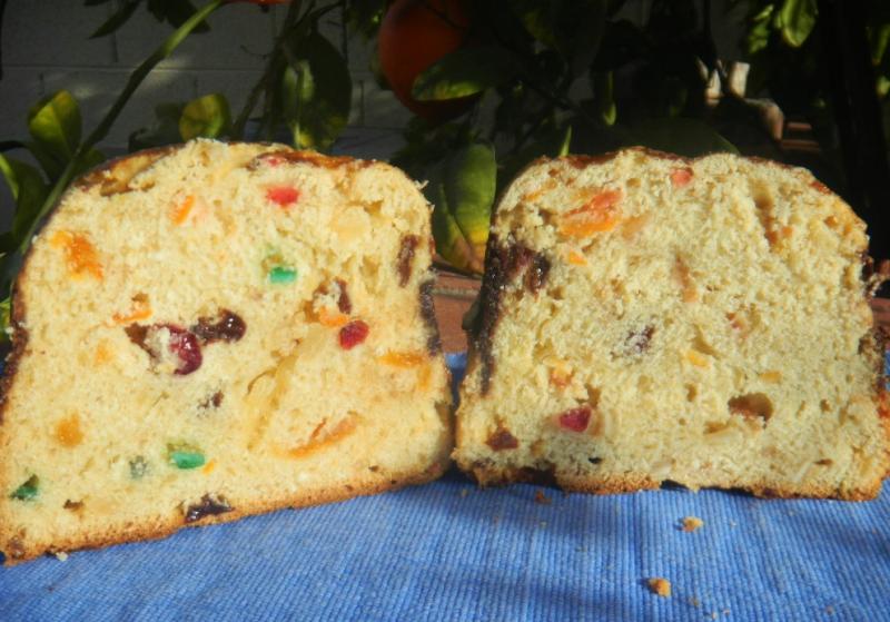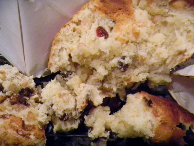 2 of the 3 panettone fell out of the molds when overturned to cool again, even though they were baked to 205 F (the right temperature if you ask me) on the inside instead of the recommended 185 F.   At least this time we were ready with a cutting board underneath so it didn’t plop on the kitchen tile.
